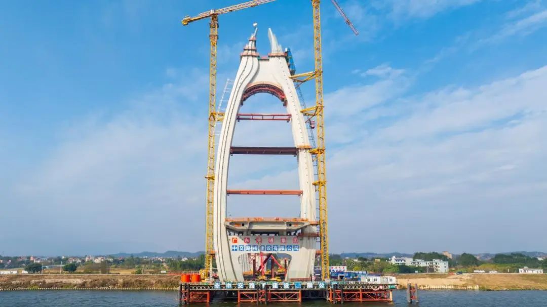 “目前大桥已完成主塔施工,正全力冲刺斜拉桥主梁施工,已完成102节,超过五成。施工人员正在抢抓工期,预计2026年上半年实现合龙。”李鸿升介绍到。